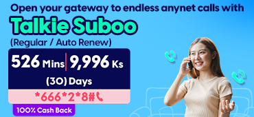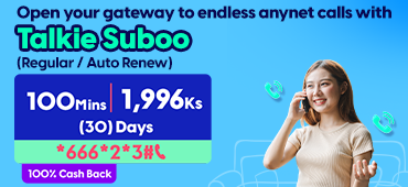 Talkie Suboo is the anynet voice offer which allows you to call ATOM to any local numbers. Talkie Suboo is a worry-free local call offer with the carry over feature which allows you to keep the remaining unused balance until the next 7 days from the pack expiry. The unused balance will be combined with a new one if the customer purchases the same or new (any) Talkie Suboo Offer with 7 days carryover grace period.