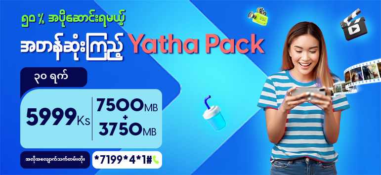 Yatha Pack ဆိုတာက အက်တမ် Store App ရဲ့ ရသပေါ်က ဗွီဒီယိုတွေနဲ့ ရသအစီအစဥ်တွေကို ကြည့်ရှုနိုင်မယ့် အတန်ဆုံးသော ဒေတာပက်ခ်ပဲဖြစ်ပါတယ်။