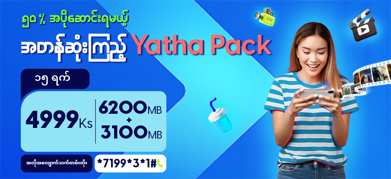 “အက်တမ် ရသ”ဆိုတာက အသက်အရွယ် လူကြီးလူငယ်မရွေး ကြိုက်နှစ်သက်ကြမယ့် ရုပ်ရှင်၊ ဇာတ်လမ်းတွဲနဲ့ အခြားဖျော်ဖြေရေးအစီအစဥ်တွေ၊ နယ်ပယ်အသီးသီးက အောင်မြင်ကျော်ကြားကြတဲ့ Content Creator တွေရဲ့ ဗွီဒီယိုတွေအပြင် ဖုန်းထဲကနေ အချိန်နဲ့တပြေးညီ ကြည့်ရှုနိုင်တဲ့ Live Channel တွေ၊ ဂိမ်းအကြောင်းအရာ၊ Let's Play Arena နဲ့ အားကစားဆိုင်ရာ သတင်းတွေ၊ ဘောလုံးပွဲတွေ၊ အစုံအလင်ကို တစ်နေရာတည်းမှာ ကြည့်ရှုခံစားအပန်းဖြေနိုင်မယ့် ဖျော်ဖြေရေး Application တစ်ခုပဲဖြစ်ပါတယ်။ iOS 13 နှင့်အထက် ၊ Android version 7 နှင့်အထက် device တွေမှာအသုံးပြုနိုင်ပါတယ်။ “Guest User” အနေနဲ့ အက်တမ် ရသ Application ကို အသုံးပြုရင်တော့ Free ပေးကြည့်ထားတဲ့ ဗွီဒီယိုနဲ့ ဖျော်ဖြေရေးအစီအစဥ်များကို အက်တမ်မိုဘိုင်းဒေတာနဲ့သာမက Wi-Fi နှင့် အခြား Operator မိုဘိုင်းဒေတာနဲ့ပါ ကြည့်ရှုနိုင်ပါတယ်။ “အက်တမ် ရသ” Application ကို အက်တမ်ဖုန်းနံပါတ် (သို့) Google Account (သို့) Apple ID နဲ့ အရင် အကောင့်ဖွင့်ပေးပါ။ ပြီးရင်တော့ ဗွီဒီယိုနဲ့အစီအစဥ်အားလုံးကို အက်တမ်မိုဘိုင်းဒေတာ အသုံးပြုပြီး ကြည့်ရှုခပေးစရာမလိုဘဲ ကြည့်လို့ရပါပြီ။ ဗွီဒီယိုကြည့်ရှုခြင်းအတွက် ဒေတာကုန်ကျစရိတ်ကိုတော့ ကောက်ခံသွားမှာပဲဖြစ်ပါတယ်နော်။ “အက်တမ် ရသ”Application ကိုအသုံးပြုတဲ့အခါ VPN လေးပိတ်ပြီး အသုံးပြုပေးပါနော်။ “အက်တမ် ရသ” Application ထဲက အစီအစဥ်တွေကို Yatha Pack နဲ့ကြည့်လို့ရပြီး ကြည့်ရှုမှုအတွက် ဒေတာကုန်ကျစရိတ်ကို Yatha Pack ထဲကသာ ဖြတ်သွားမှာဖြစ်ပါတယ်။ လက်တလောတော့ “အက်တမ် ရသ” Application ကို မိုဘိုင်းဖုန်း (iOS, Android) နဲ့ Android Tablet တွေမှာပဲ အသုံးပြုလို့ရပါသေးတယ်ရှင်။ မကြာခင်မှာ Desktop နဲ့ iPad တွေမှာပဲ အသုံးပြုနိုင်တော့မှာဖြစ်လို့ စောင့်ဆိုင်းပေးပါဦးနော်။ အက်တမ်ရသမှာကြည့်ရှုဖို့ 3GB ဒေတာ(၃ရက်သက်တမ်း)ကိုတစ်ကြိမ်ရရှိနိုင်ပါတယ်။ ရည်ညွှန်းထားတဲ့သူငယ်ချင်းက sign up လုပ်တဲ့အခါ ကြိုက်ရာသုံးဒေတာ 1GB (၂၄နာရီသက်တမ်း) ကိုတစ်ကြိမ်ရရှိနိုင်ပါတယ်။ “အက်တမ် ရသ” Application ရဲ့ ပင်မာစာမျက်နှာ အပေါ်ရှိ “ရှာဖွေမည်” (သို့) Search Bar လေးကို နှိပ်ပြီး ကိုယ်ကြည့်ချင်တဲ့ ရုပ်ရှင်/ဇာတ်လမ်းတွဲနာမည်၊ မင်းသား,မင်းသမီးနာမည်ကို ရိုက်ထည့်ပြီး ရှာပေးလို့ရပါတယ်ရှင်။ “အက်တမ် ရသ” Application ထဲမှာ ရုပ်ရှင်၊ ဗွီဒီယိုတွေကြည့်ပြီး အကြောင်းကြောင်းကြောင့် ဆုံးအောင် မကြည့်လိုက်ရတဲ့သူတွေအနေနဲ့ ကြည့်လက်စ ဗွီဒီယိုတွေကို “အက်တမ် ရသ” Application ပင်မစာမျက်နှာမှာရှိတဲ့ “ဆက်လက်ကြည့်ရှုရန်” နေရာ (သို့မဟုတ်) “My Watchlist” အောက်မှာရှိတဲ့ “ဆက်လက်ကြည့်ရှုရန်”မှာ ပြန်ရှာကြည့်လို့ရပါတယ်။ ကြည့်ချင်တဲ့ ဇာတ်ကားထဲဝင်ပြီး “နောက်မှကြည့်ရန်/ Watch Later” ကိုနှိပ်ထားပေးပါ သိမ်းထားတဲ့ဇာတ်ကားတွေကို ပင်မစာမျက်နှာ ညာဖက်ထိပ်မှရှိတဲ့ Menu ကိုနှိပ်ကာ “စောင့်ကြည့်စာရင်းများ / My